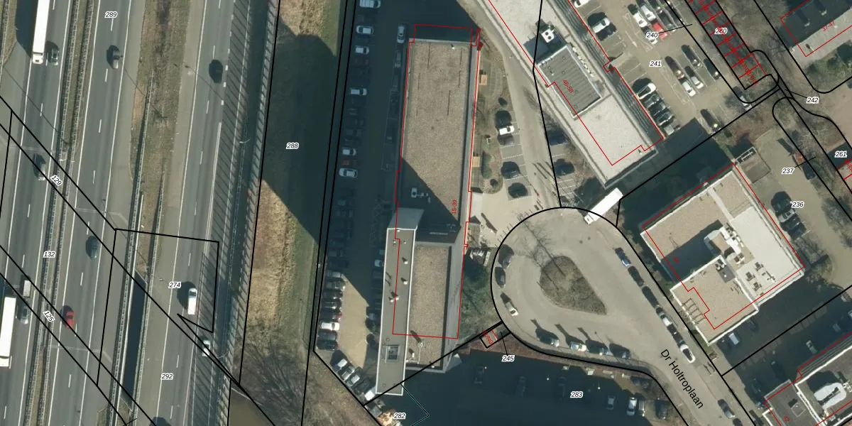 Het perceel waarop Dr Holtroplaan 27 staat heeft een oppervlakte van 5768 m². Dit is een zeer groot perceel. De perceeloppervlakte wordt geregistreerd door het Kadaster. Gedetailleerde informatie over de maten van dit perceel kunt u vinden in het rapport Kadastrale kaart met maatvoering van Dr Holtroplaan 27.