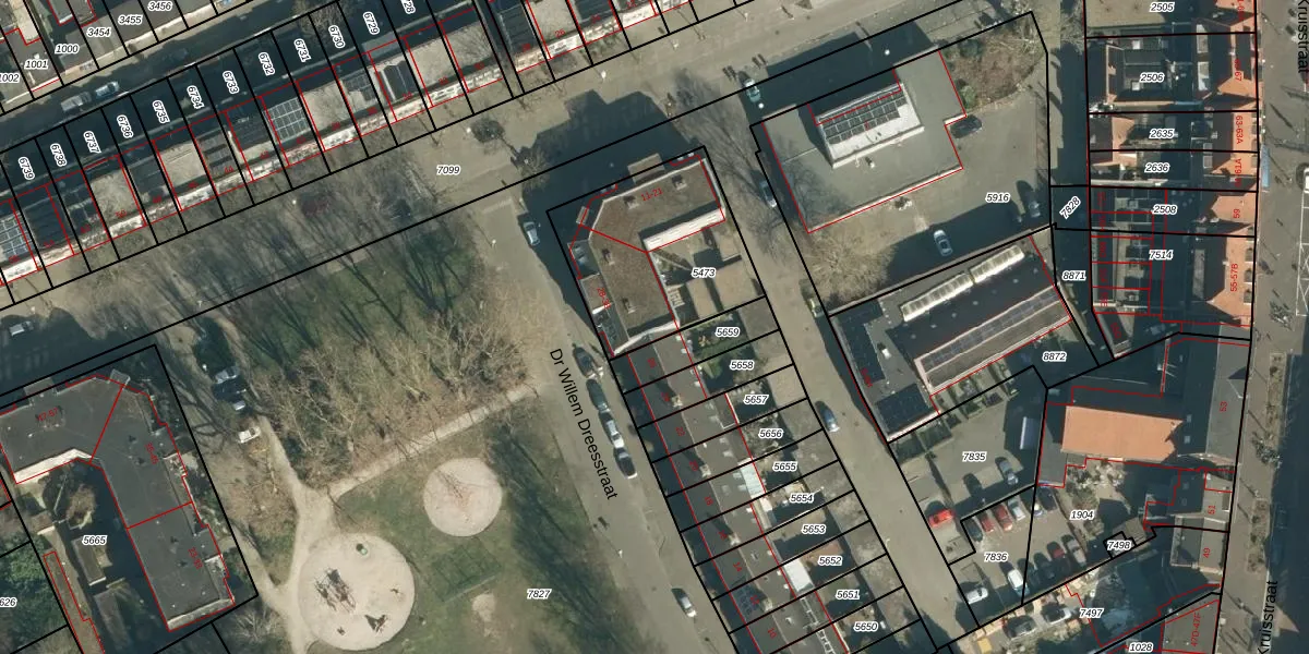 Het perceel waarop Dr Willem Dreesstraat 36 staat heeft een oppervlakte van 643 m². Dit is een groot perceel. De perceeloppervlakte wordt geregistreerd door het Kadaster. Gedetailleerde informatie over de maten van dit perceel kunt u vinden in het rapport Kadastrale kaart met maatvoering van Dr Willem Dreesstraat 36.