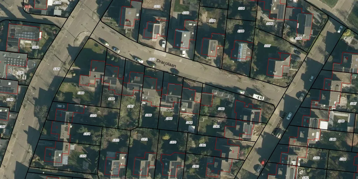 Het perceel waarop Dracolaan 5 staat heeft een oppervlakte van 341 m². Dit is een groot perceel. De perceeloppervlakte wordt geregistreerd door het Kadaster. Gedetailleerde informatie over de maten van dit perceel kunt u vinden in het rapport Kadastrale kaart met maatvoering van Dracolaan 5.