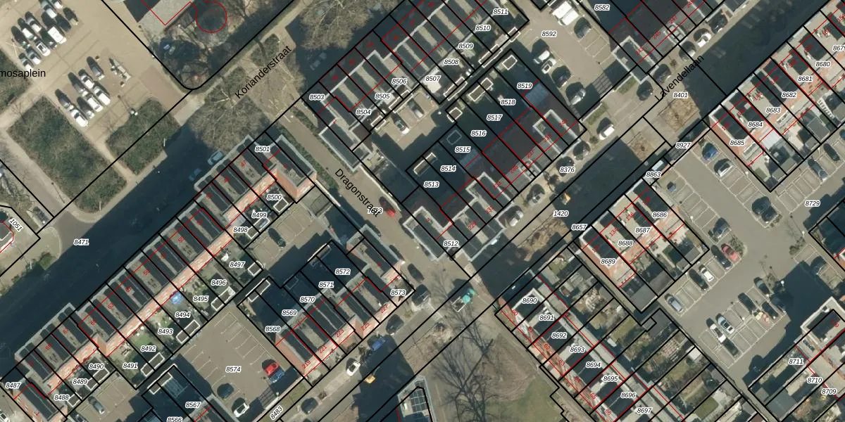 Dragonstraat 3 is gelegen op kadastraal perceel STM00D8512. Deze kadastrale aanduiding is uniek en wordt gebruikt door het Kadaster om eigendomsrechten en andere zakelijke rechten vast te leggen. Het perceel maakt onderdeel uit van de kadastrale gemeente Stratum.