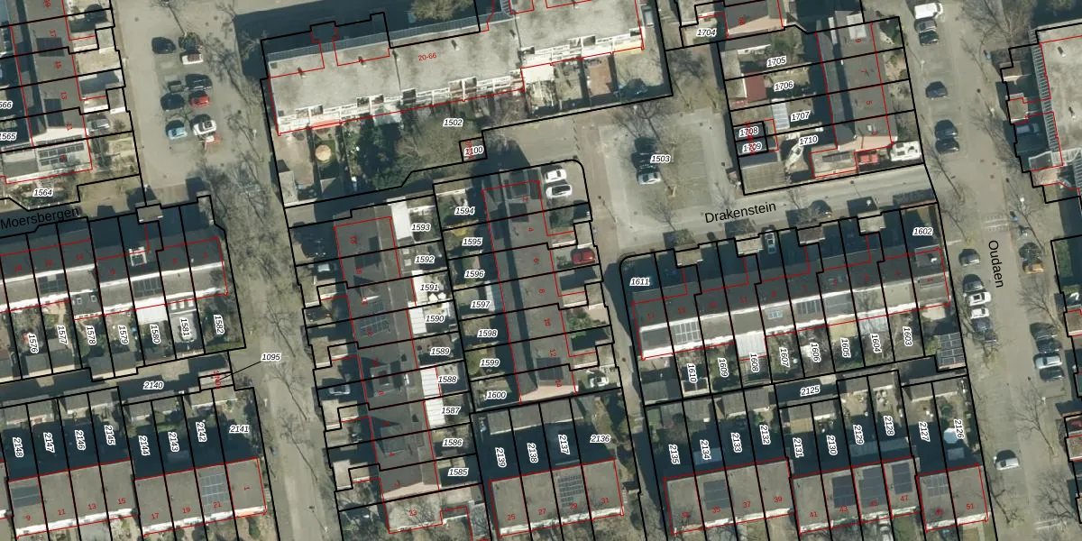 Gebruik de zoekbalk of klik op een perceel voor informatie over de adressen binnen dit perceel.