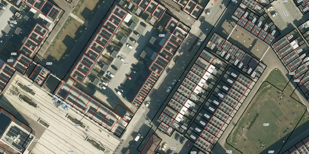 Het perceel waarop Drebbelstraat 32 staat heeft een oppervlakte van 3280 m². Dit is een zeer groot perceel. De perceeloppervlakte wordt geregistreerd door het Kadaster. Gedetailleerde informatie over de maten van dit perceel kunt u vinden in het rapport Kadastrale kaart met maatvoering van Drebbelstraat 32.