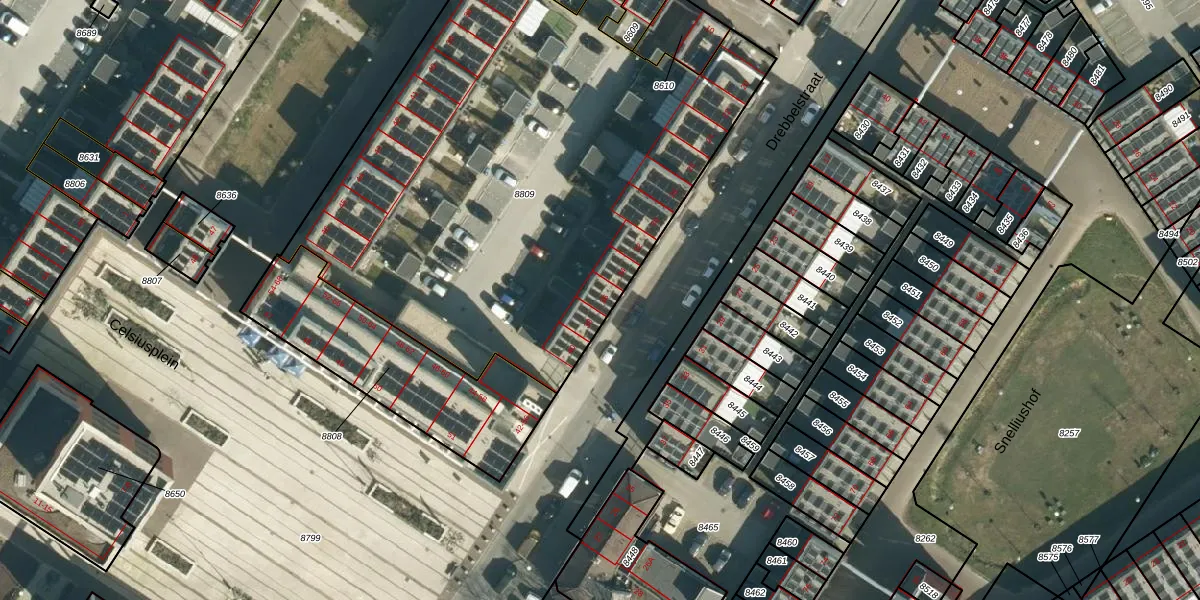 Het perceel waarop Drebbelstraat 36 staat heeft een oppervlakte van 3280 m². Dit is een zeer groot perceel. De perceeloppervlakte wordt geregistreerd door het Kadaster. Gedetailleerde informatie over de maten van dit perceel kunt u vinden in het rapport Kadastrale kaart met maatvoering van Drebbelstraat 36.