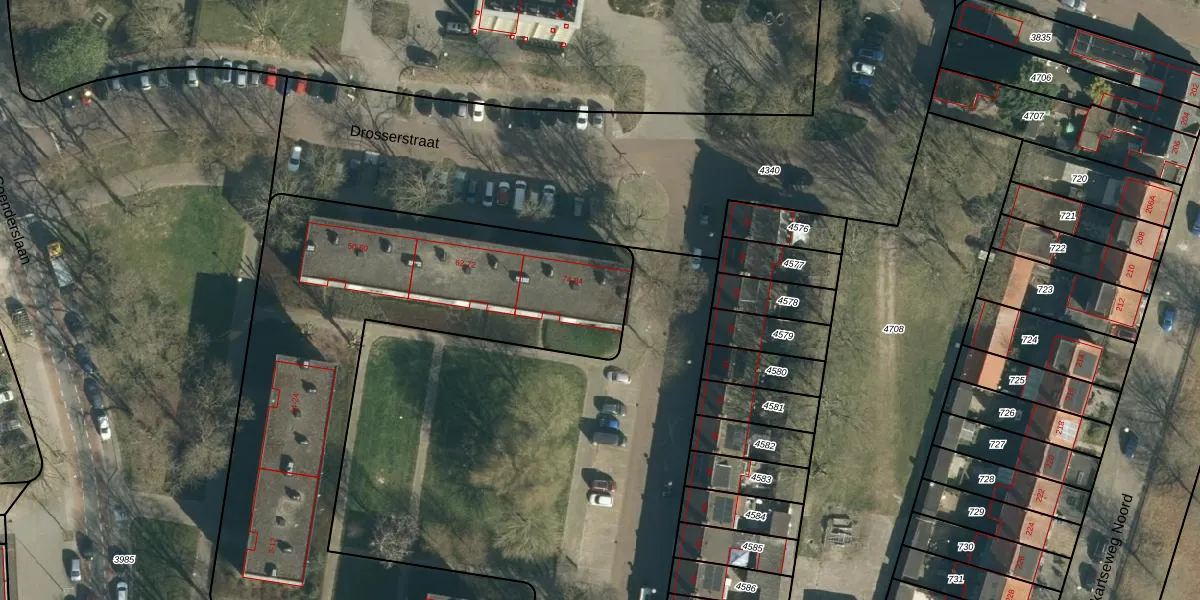 Het perceel waarop Drosserstraat 80 staat heeft een oppervlakte van 6283 m². Dit is een zeer groot perceel. De perceeloppervlakte wordt geregistreerd door het Kadaster. Gedetailleerde informatie over de maten van dit perceel kunt u vinden in het rapport Kadastrale kaart met maatvoering van Drosserstraat 80.