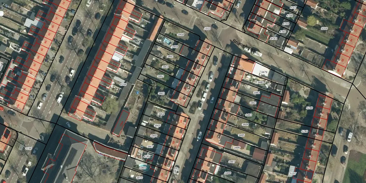Gebruik de zoekbalk of klik op een perceel voor informatie over de adressen binnen dit perceel.