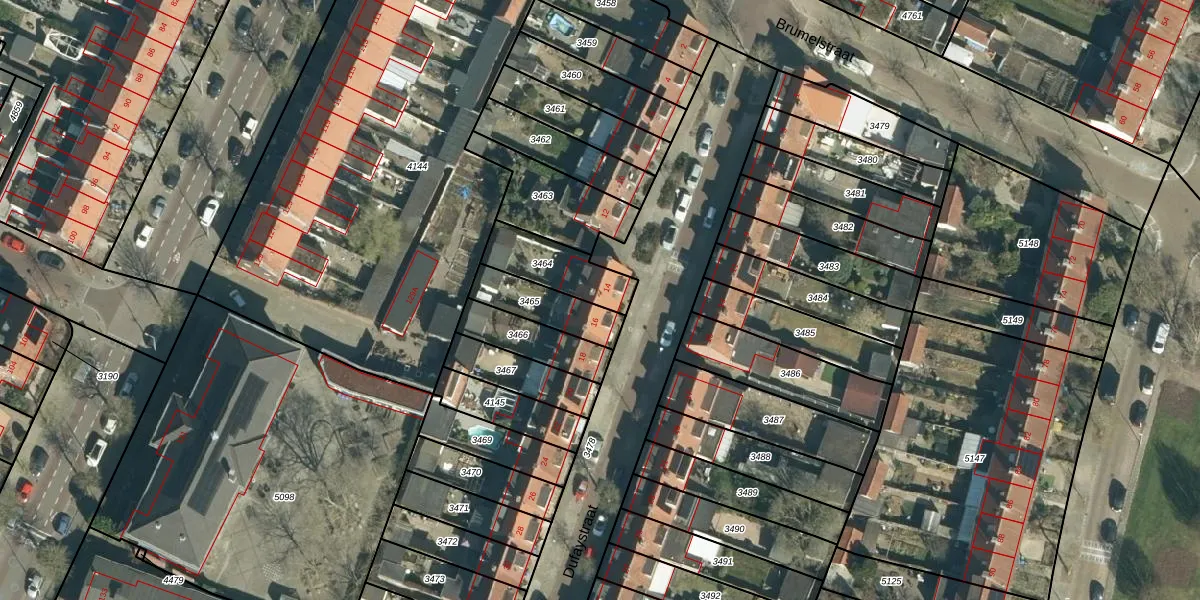Gebruik de zoekbalk of klik op een perceel voor informatie over de adressen binnen dit perceel.