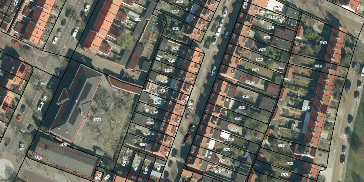 Het perceel waarop Dufaystraat 20 staat heeft een oppervlakte van 157 m². Dit is een middelgroot perceel. De perceeloppervlakte wordt geregistreerd door het Kadaster. Gedetailleerde informatie over de maten van dit perceel kunt u vinden in het rapport Kadastrale kaart met maatvoering van Dufaystraat 20.