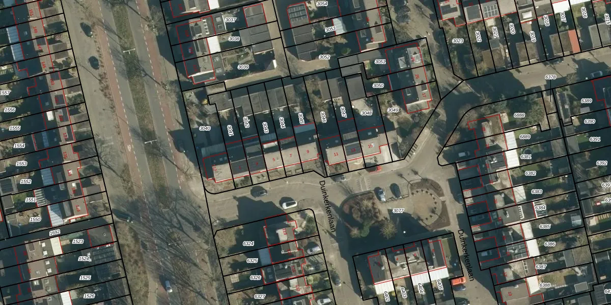 Duinkerkenlaan 9 is gelegen op kadastraal perceel WSL01W3045. Deze kadastrale aanduiding is uniek en wordt gebruikt door het Kadaster om eigendomsrechten en andere zakelijke rechten vast te leggen. Het perceel maakt onderdeel uit van de kadastrale gemeente Woensel.