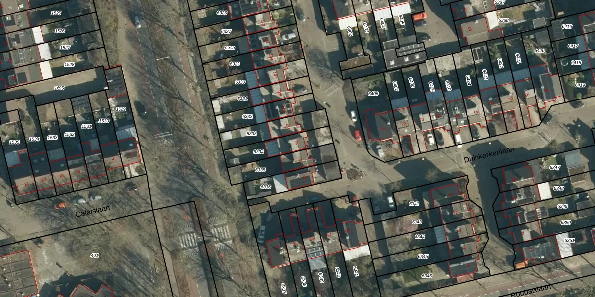 Gebruik de zoekbalk of klik op een perceel voor informatie over de adressen binnen dit perceel.