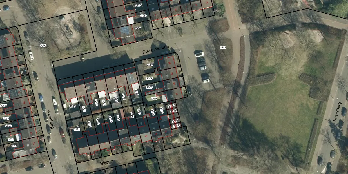 Gebruik de zoekbalk of klik op een perceel voor informatie over de adressen binnen dit perceel.