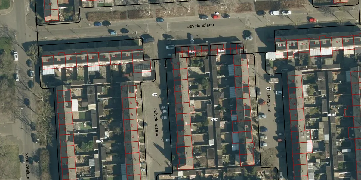 Duivelandstraat 16 is gelegen op kadastraal perceel WSL01R1377. Deze kadastrale aanduiding is uniek en wordt gebruikt door het Kadaster om eigendomsrechten en andere zakelijke rechten vast te leggen. Het perceel maakt onderdeel uit van de kadastrale gemeente Woensel.