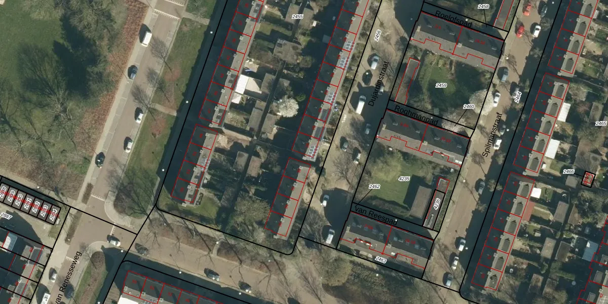 Het perceel waarop Dujardinstraat 28 staat heeft een oppervlakte van 6350 m². Dit is een zeer groot perceel. De perceeloppervlakte wordt geregistreerd door het Kadaster. Gedetailleerde informatie over de maten van dit perceel kunt u vinden in het rapport Kadastrale kaart met maatvoering van Dujardinstraat 28.