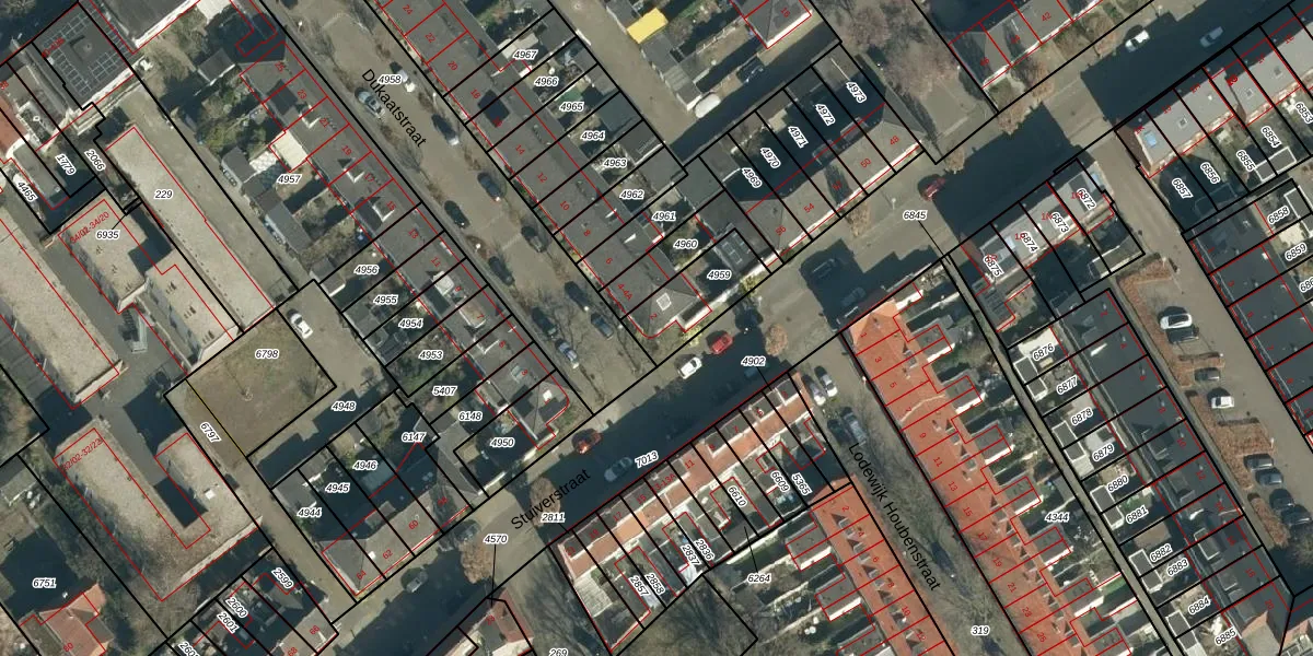 Gebruik de zoekbalk of klik op een perceel voor informatie over de adressen binnen dit perceel.