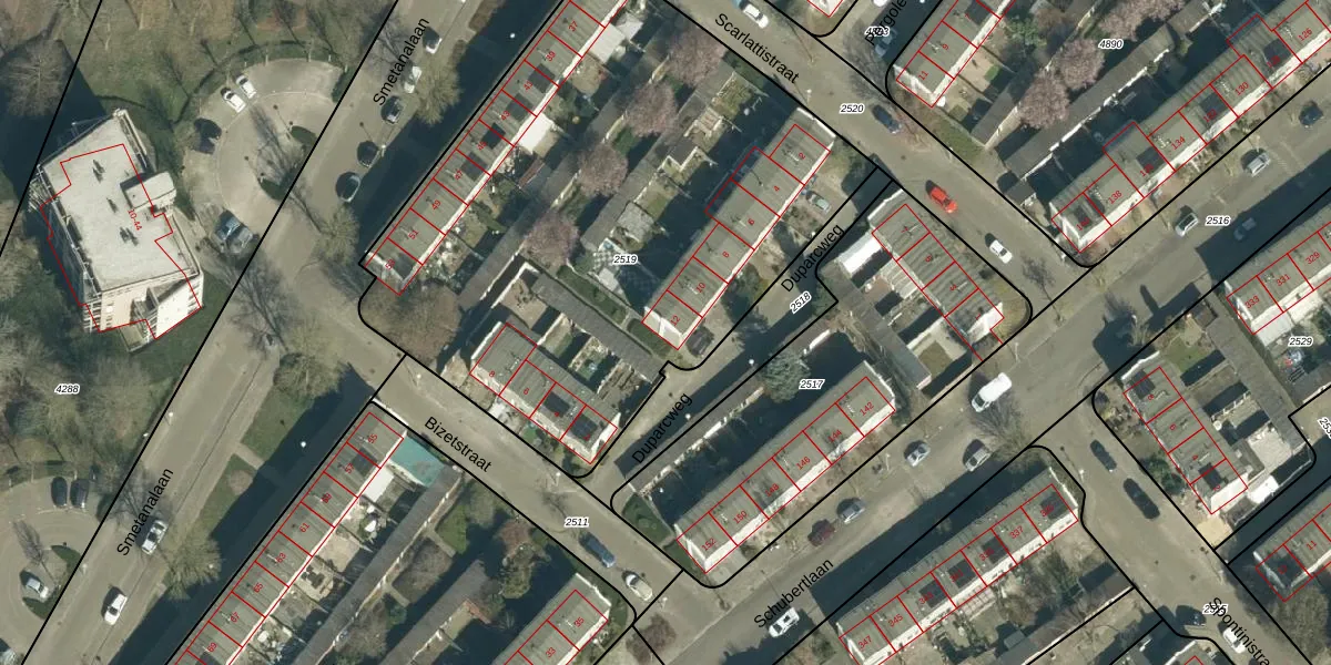 Het perceel waarop Duparcweg 12 staat heeft een oppervlakte van 3245 m². Dit is een zeer groot perceel. De perceeloppervlakte wordt geregistreerd door het Kadaster. Gedetailleerde informatie over de maten van dit perceel kunt u vinden in het rapport Kadastrale kaart met maatvoering van Duparcweg 12.