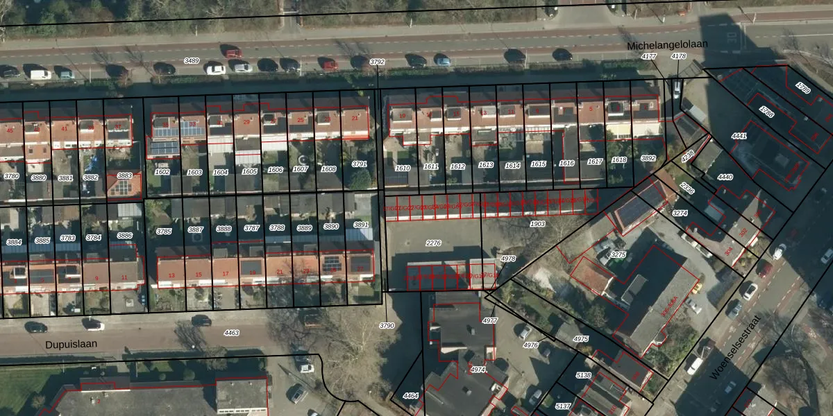 Het perceel waarop Dupuislaan 27-G03 staat heeft een oppervlakte van 535 m². Dit is een groot perceel. De perceeloppervlakte wordt geregistreerd door het Kadaster. Gedetailleerde informatie over de maten van dit perceel kunt u vinden in het rapport Kadastrale kaart met maatvoering van Dupuislaan 27-G03.