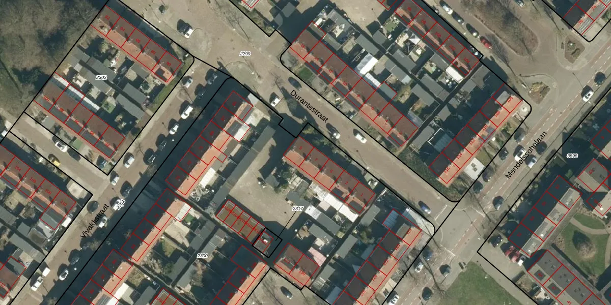 Durantestraat 9 is gelegen op kadastraal perceel GTL01D2300. Deze kadastrale aanduiding is uniek en wordt gebruikt door het Kadaster om eigendomsrechten en andere zakelijke rechten vast te leggen. Het perceel maakt onderdeel uit van de kadastrale gemeente Gestel.