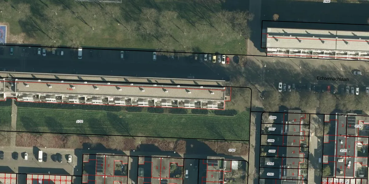 Echternachlaan 147 is gelegen op kadastraal perceel WSL01P1732. Deze kadastrale aanduiding is uniek en wordt gebruikt door het Kadaster om eigendomsrechten en andere zakelijke rechten vast te leggen. Het perceel maakt onderdeel uit van de kadastrale gemeente Woensel.