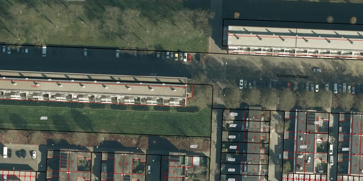 Echternachlaan 161 is gelegen op kadastraal perceel WSL01P1732. Deze kadastrale aanduiding is uniek en wordt gebruikt door het Kadaster om eigendomsrechten en andere zakelijke rechten vast te leggen. Het perceel maakt onderdeel uit van de kadastrale gemeente Woensel.