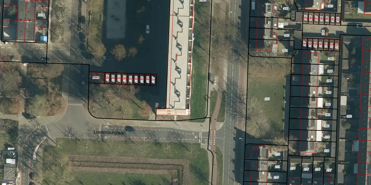Echternachlaan 194 is gelegen op kadastraal perceel WSL01P2963. Deze kadastrale aanduiding is uniek en wordt gebruikt door het Kadaster om eigendomsrechten en andere zakelijke rechten vast te leggen. Het perceel maakt onderdeel uit van de kadastrale gemeente Woensel.