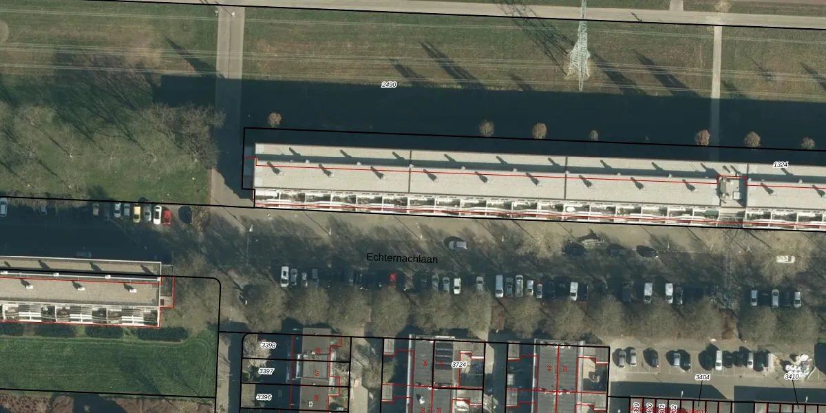Echternachlaan 214 is gelegen op kadastraal perceel WSL01P1324. Deze kadastrale aanduiding is uniek en wordt gebruikt door het Kadaster om eigendomsrechten en andere zakelijke rechten vast te leggen. Het perceel maakt onderdeel uit van de kadastrale gemeente Woensel.