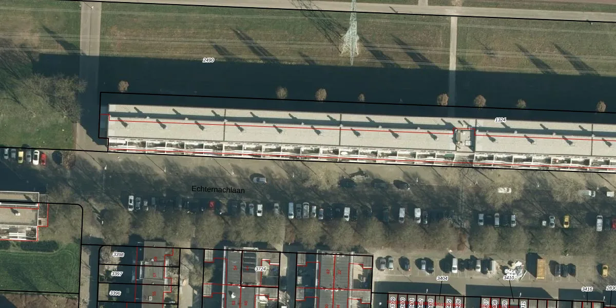 Het perceel waarop Echternachlaan 222 staat heeft een oppervlakte van 4556 m². Dit is een zeer groot perceel. De perceeloppervlakte wordt geregistreerd door het Kadaster. Gedetailleerde informatie over de maten van dit perceel kunt u vinden in het rapport Kadastrale kaart met maatvoering van Echternachlaan 222.