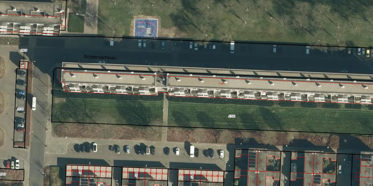 Echternachlaan 27 is gelegen op kadastraal perceel WSL01P1732. Deze kadastrale aanduiding is uniek en wordt gebruikt door het Kadaster om eigendomsrechten en andere zakelijke rechten vast te leggen. Het perceel maakt onderdeel uit van de kadastrale gemeente Woensel.