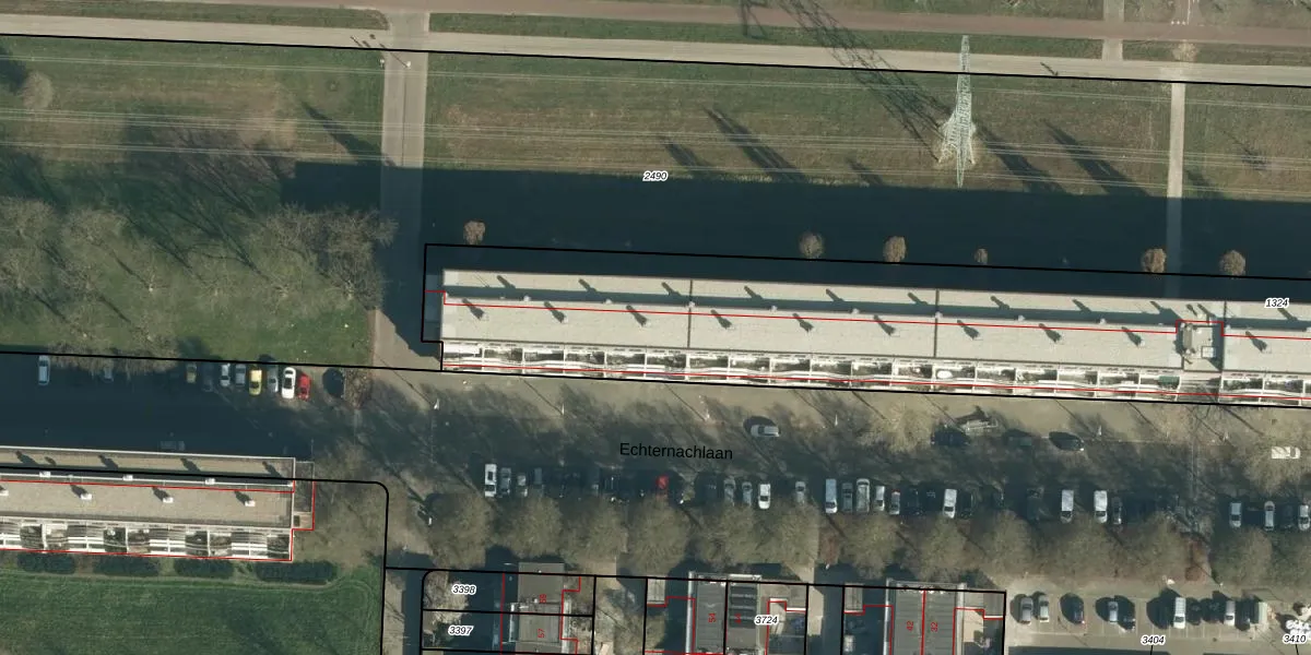 Het perceel waarop Echternachlaan 296 staat heeft een oppervlakte van 4556 m². Dit is een zeer groot perceel. De perceeloppervlakte wordt geregistreerd door het Kadaster. Gedetailleerde informatie over de maten van dit perceel kunt u vinden in het rapport Kadastrale kaart met maatvoering van Echternachlaan 296.