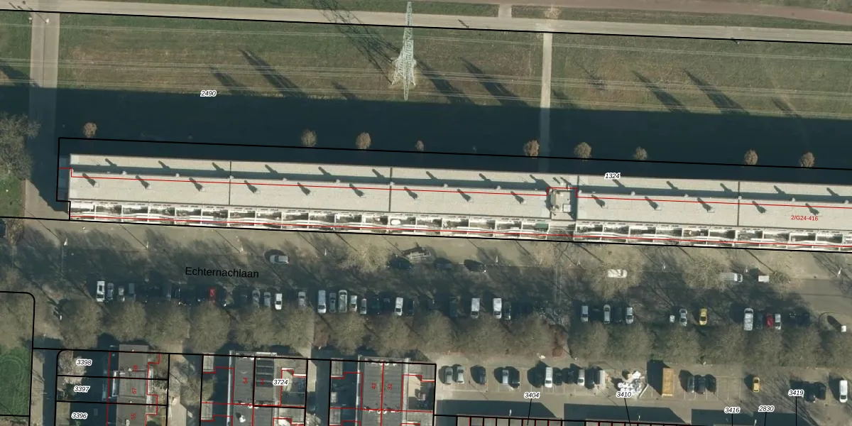 Echternachlaan 326 is gelegen op kadastraal perceel WSL01P1324. Deze kadastrale aanduiding is uniek en wordt gebruikt door het Kadaster om eigendomsrechten en andere zakelijke rechten vast te leggen. Het perceel maakt onderdeel uit van de kadastrale gemeente Woensel.