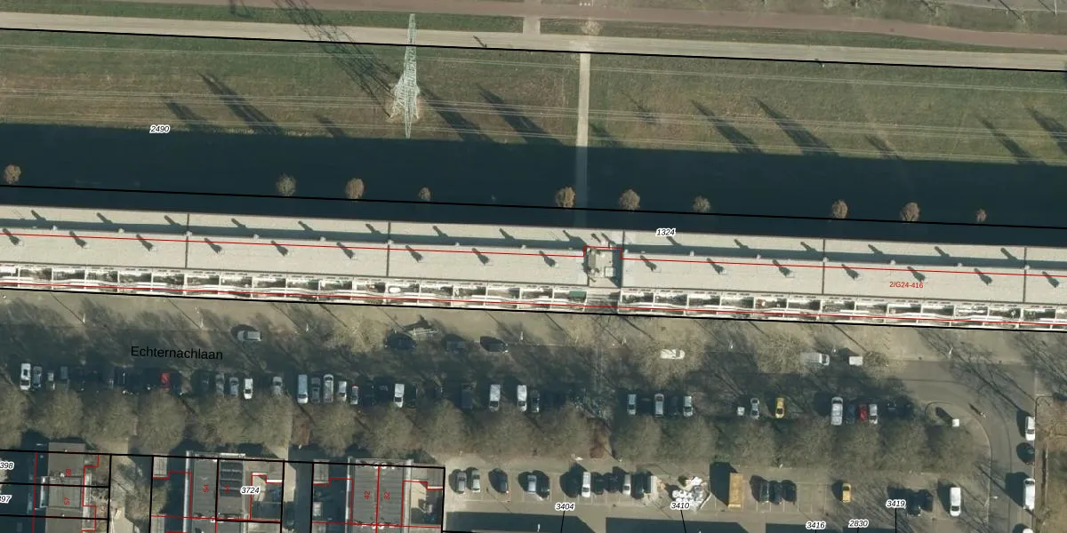 Het perceel waarop Echternachlaan 338 staat heeft een oppervlakte van 4556 m². Dit is een zeer groot perceel. De perceeloppervlakte wordt geregistreerd door het Kadaster. Gedetailleerde informatie over de maten van dit perceel kunt u vinden in het rapport Kadastrale kaart met maatvoering van Echternachlaan 338.