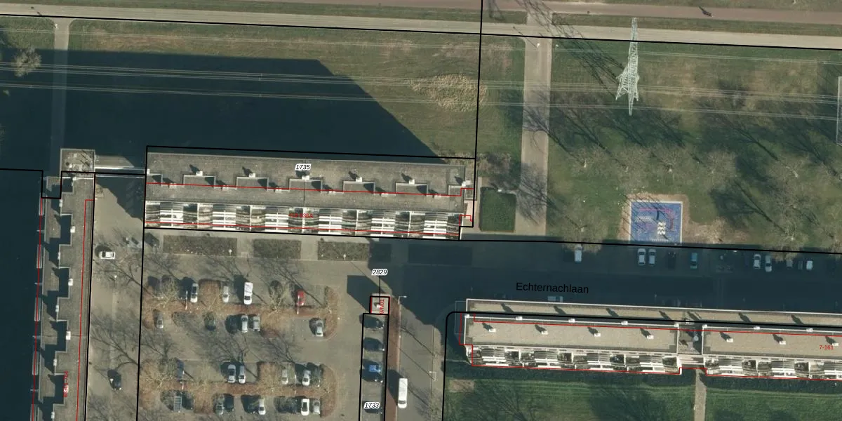 Echternachlaan 448 is gelegen op kadastraal perceel WSL01P1735. Deze kadastrale aanduiding is uniek en wordt gebruikt door het Kadaster om eigendomsrechten en andere zakelijke rechten vast te leggen. Het perceel maakt onderdeel uit van de kadastrale gemeente Woensel.