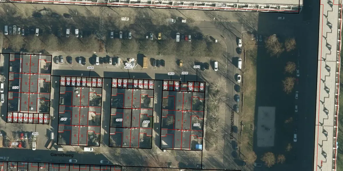 Echternachlaan 5-G05 is gelegen op kadastraal perceel WSL01P3416. Deze kadastrale aanduiding is uniek en wordt gebruikt door het Kadaster om eigendomsrechten en andere zakelijke rechten vast te leggen. Het perceel maakt onderdeel uit van de kadastrale gemeente Woensel.