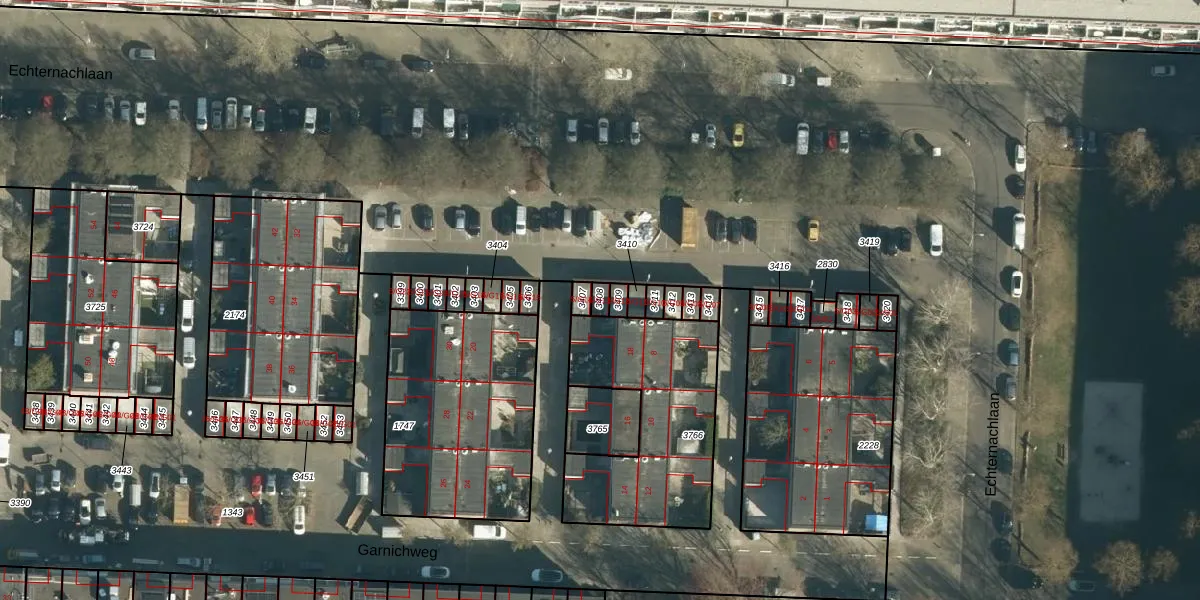 Echternachlaan 5-G13 is gelegen op kadastraal perceel WSL01P3408. Deze kadastrale aanduiding is uniek en wordt gebruikt door het Kadaster om eigendomsrechten en andere zakelijke rechten vast te leggen. Het perceel maakt onderdeel uit van de kadastrale gemeente Woensel.