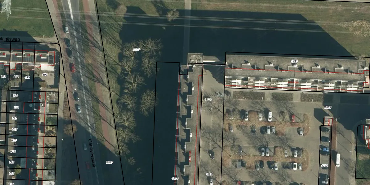 Het perceel waarop Echternachlaan 656 staat heeft een oppervlakte van 3658 m². Dit is een zeer groot perceel. De perceeloppervlakte wordt geregistreerd door het Kadaster. Gedetailleerde informatie over de maten van dit perceel kunt u vinden in het rapport Kadastrale kaart met maatvoering van Echternachlaan 656.
