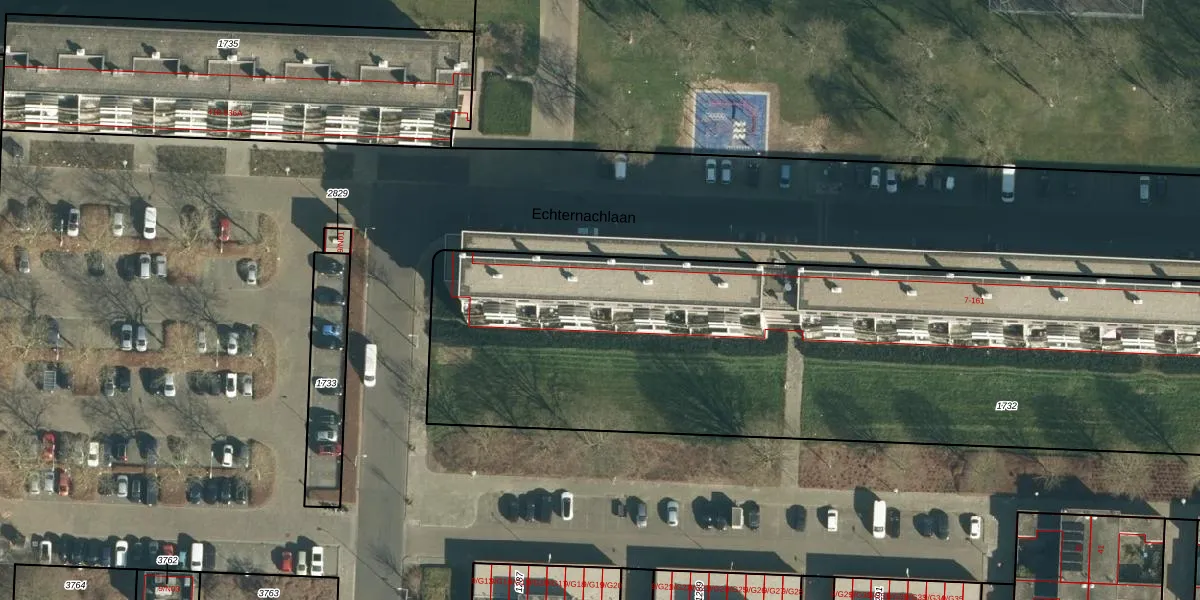 Echternachlaan 71 is gelegen op kadastraal perceel WSL01P1732. Deze kadastrale aanduiding is uniek en wordt gebruikt door het Kadaster om eigendomsrechten en andere zakelijke rechten vast te leggen. Het perceel maakt onderdeel uit van de kadastrale gemeente Woensel.
