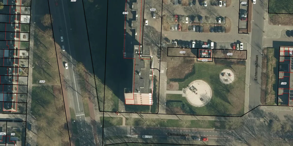 Echternachlaan 722 is gelegen op kadastraal perceel WSL01P3679. Deze kadastrale aanduiding is uniek en wordt gebruikt door het Kadaster om eigendomsrechten en andere zakelijke rechten vast te leggen. Het perceel maakt onderdeel uit van de kadastrale gemeente Woensel.