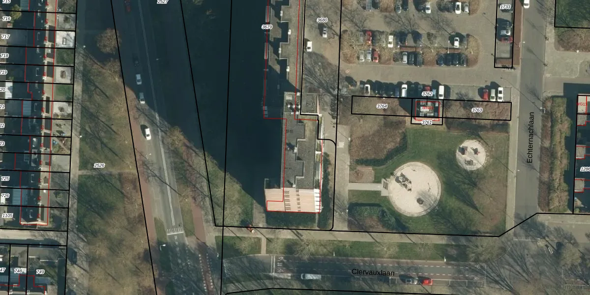Het perceel waarop Echternachlaan 760 staat heeft een oppervlakte van 3658 m². Dit is een zeer groot perceel. De perceeloppervlakte wordt geregistreerd door het Kadaster. Gedetailleerde informatie over de maten van dit perceel kunt u vinden in het rapport Kadastrale kaart met maatvoering van Echternachlaan 760.