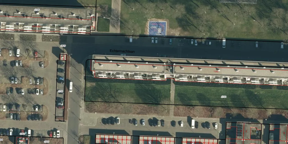 Echternachlaan 79 is gelegen op kadastraal perceel WSL01P1732. Deze kadastrale aanduiding is uniek en wordt gebruikt door het Kadaster om eigendomsrechten en andere zakelijke rechten vast te leggen. Het perceel maakt onderdeel uit van de kadastrale gemeente Woensel.