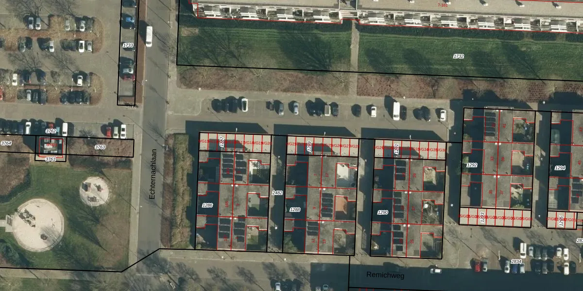 Echternachlaan 9-G21 is gelegen op kadastraal perceel WSL01P1289. Deze kadastrale aanduiding is uniek en wordt gebruikt door het Kadaster om eigendomsrechten en andere zakelijke rechten vast te leggen. Het perceel maakt onderdeel uit van de kadastrale gemeente Woensel.