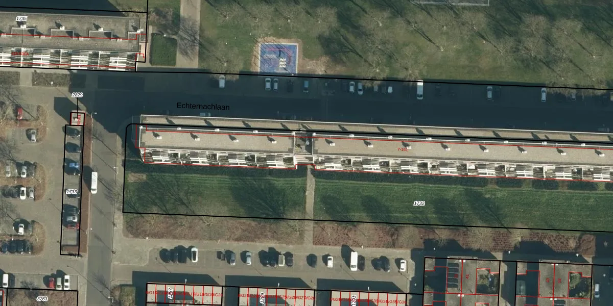 Echternachlaan 93 is gelegen op kadastraal perceel WSL01P1732. Deze kadastrale aanduiding is uniek en wordt gebruikt door het Kadaster om eigendomsrechten en andere zakelijke rechten vast te leggen. Het perceel maakt onderdeel uit van de kadastrale gemeente Woensel.