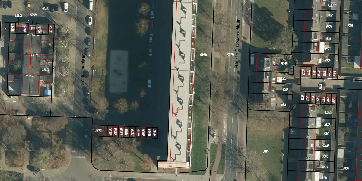Echternachlaan 96 is gelegen op kadastraal perceel WSL01P2963. Deze kadastrale aanduiding is uniek en wordt gebruikt door het Kadaster om eigendomsrechten en andere zakelijke rechten vast te leggen. Het perceel maakt onderdeel uit van de kadastrale gemeente Woensel.