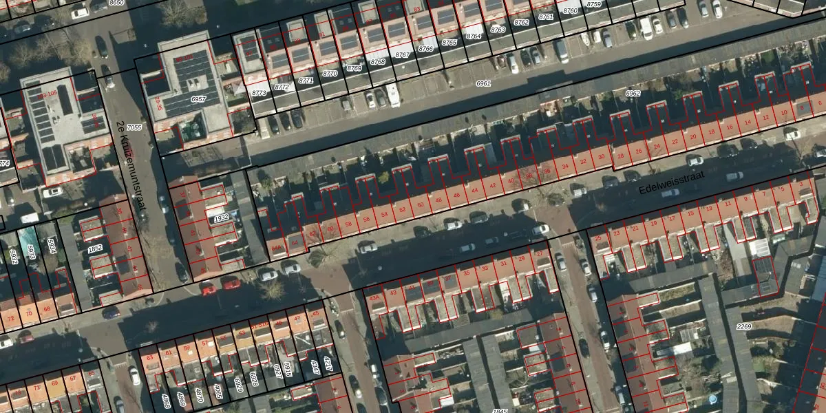 Edelweisstraat 50 is gelegen op kadastraal perceel STM00D6962. Deze kadastrale aanduiding is uniek en wordt gebruikt door het Kadaster om eigendomsrechten en andere zakelijke rechten vast te leggen. Het perceel maakt onderdeel uit van de kadastrale gemeente Stratum.