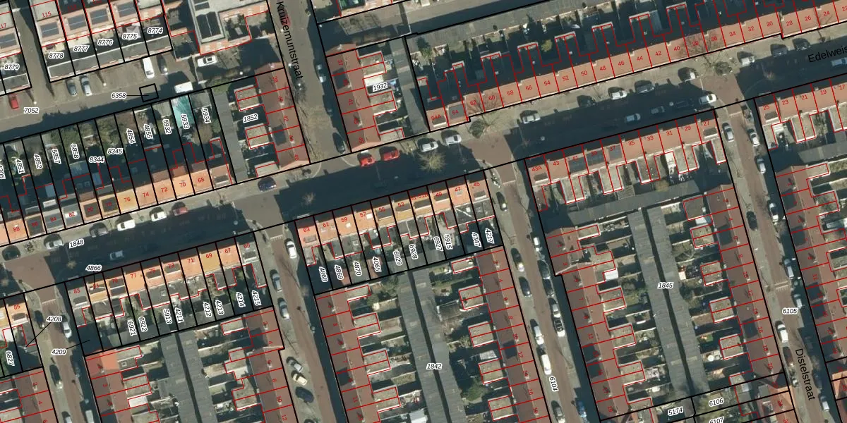 Het perceel waarop Edelweisstraat 51-B staat heeft een oppervlakte van 84 m². Dit is een klein perceel. De perceeloppervlakte wordt geregistreerd door het Kadaster. Gedetailleerde informatie over de maten van dit perceel kunt u vinden in het rapport Kadastrale kaart met maatvoering van Edelweisstraat 51-B.