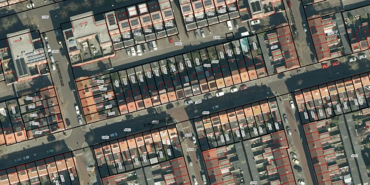 Gebruik de zoekbalk of klik op een perceel voor informatie over de adressen binnen dit perceel.