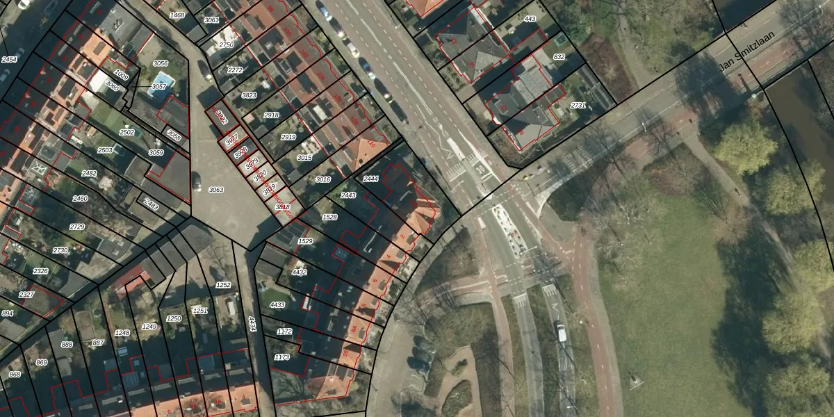 Gebruik de zoekbalk of klik op een perceel voor informatie over de adressen binnen dit perceel.