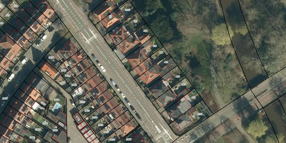 Gebruik de zoekbalk of klik op een perceel voor informatie over de adressen binnen dit perceel.