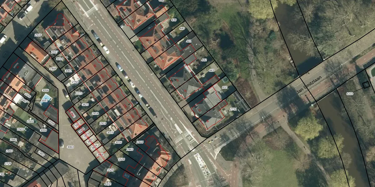 Gebruik de zoekbalk of klik op een perceel voor informatie over de adressen binnen dit perceel.
