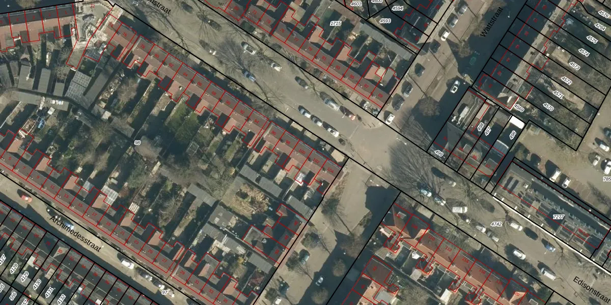 Het perceel waarop Edisonstraat 100 staat heeft een oppervlakte van 8010 m². Dit is een zeer groot perceel. De perceeloppervlakte wordt geregistreerd door het Kadaster. Gedetailleerde informatie over de maten van dit perceel kunt u vinden in het rapport Kadastrale kaart met maatvoering van Edisonstraat 100.