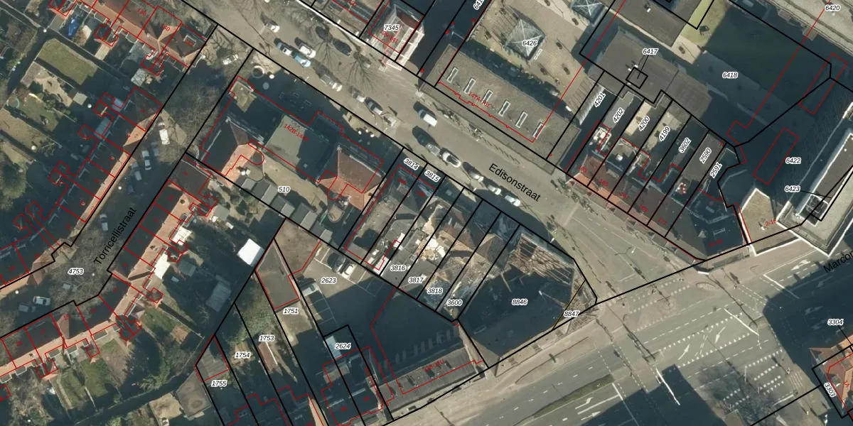 Edisonstraat 174 is gelegen op kadastraal perceel WSL01G3816. Deze kadastrale aanduiding is uniek en wordt gebruikt door het Kadaster om eigendomsrechten en andere zakelijke rechten vast te leggen. Het perceel maakt onderdeel uit van de kadastrale gemeente Woensel.