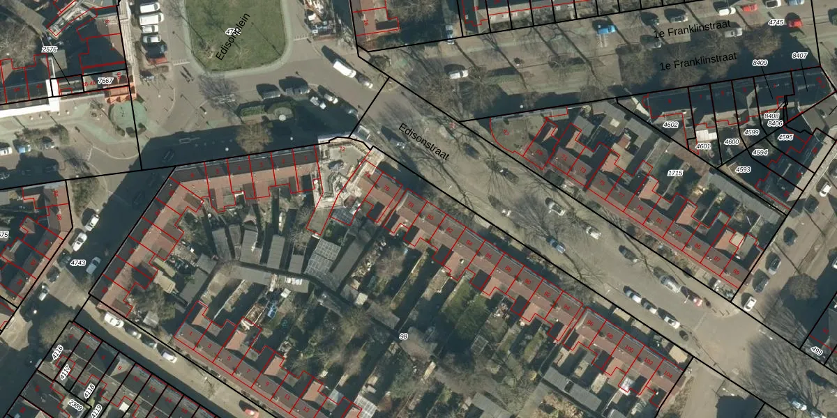 Het perceel waarop Edisonstraat 78 staat heeft een oppervlakte van 8010 m². Dit is een zeer groot perceel. De perceeloppervlakte wordt geregistreerd door het Kadaster. Gedetailleerde informatie over de maten van dit perceel kunt u vinden in het rapport Kadastrale kaart met maatvoering van Edisonstraat 78.