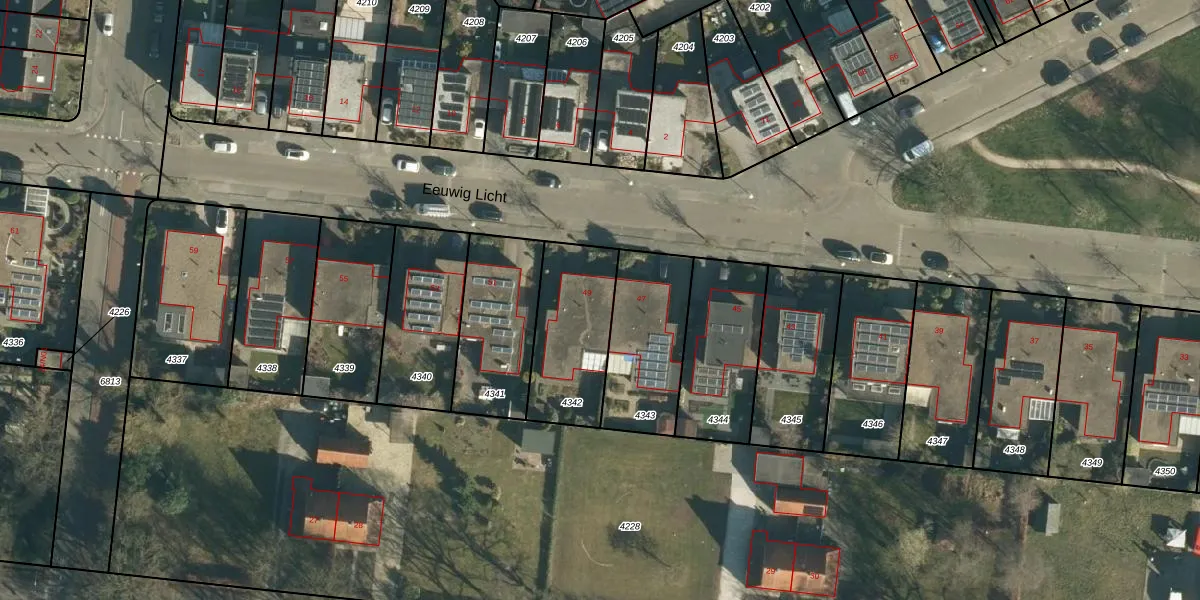 Eeuwig Licht 49 is gelegen op kadastraal perceel WSL01W4342. Deze kadastrale aanduiding is uniek en wordt gebruikt door het Kadaster om eigendomsrechten en andere zakelijke rechten vast te leggen. Het perceel maakt onderdeel uit van de kadastrale gemeente Woensel.